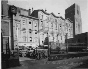 The introduction of lager beer to the American market coincided with a massive influx of German immigrants to Brooklyn in the 1840s. The arrival of these thirsty Germans with a taste for their native style beer revolutionized the brewing industry in New York City. The Germans provided a huge new market for German style lager. Two New York City breweries (George Gillig and F & M Schaefer) began to brew lager in the 1840s, S. Liebmann and Sons Brewery (later renamed Rheingold), founded in 1854, was one of the first to use the bottom fermenting process in Brooklyn. As lager gained popularity in the mid- 1850s, the cities where most German immigrants settled became lager producers and also the largest American brewing centers These places including Cincinnati, Milwaukee and St. Louis, as well as Philadelphia, New York and of course, Brooklyn, specifically in Williamsburg and Bushwick, where a German community formed and became the heart of New York’s brewing industry. The area boasted a number of features conducive to brewing: an abundant water supply, soil suitable for the construction of underground storage chambers, convenient water and rail transportation, as well as strong local demand. Between the 1850s and the 1880s, many German immigrants settled in a 14-square block area known as “Brewer’s Row, which covered Scholes and Meserole Streets and extended from Bushwick Place to Lorimer Street. At least a dozen separate breweries flourished just in Bushwick. Brooklyn in the 1870’s had become a major American beer brewer. Dozens of establishments, largely run by Germans, flourished in Williamsburg and Bushwick. By the 1880s, Brooklyn was the home to 35 breweries who generated an estimated $8 million in revenue annually. The majority of these firms exclusively brewed lager beer, while the remainder brewed ale or weiss (wheat) beer. Demand and production continued to grow. By 1898, nearly fifty breweries operated in the Brooklyn area [which came to be known as the Brewing Capitol of the United States]. Probably the most prominent of those companies established in Brewer’s Row was Leibmann’s Rheingold brewery, although there were other well-known or colorful firms such as F. & M. Schaefer, George Ehret’s, John F. Trommer’s and Piels. Bushwick produced almost 10% of all beer consumed in the United States during the height of its production.