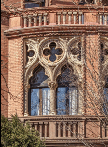 Kimball put elaborate windows and ornamentation on three sides of the building, but left the north side of the building unadorned, expecting the club to expand on the unadorned side in the future. The remaining three sides perfectly employ light and the use of contrasting solids and voids. The Gothic tracery, the stained glass, the loggias and oriel window bays, plus the pale red brick building itself, all combine to form one of Brooklyn’s most beautiful buildings. Francis Kimball marshalled all his creative talents to construct what the Landmark’s commission referred to as an “architectural treasure.” Kimball’s design for the Montauk Club owes much to the time he spent in England studying under British architect William Burgess. The British architect stimulated Kimball’s love of Gothic architecture, whose features would appear in many of his buildings. While Kimball was in England, he was highly influenced by the popularity of the Venetian Gothic and Renaissance style — itself an amalgam of Middle Eastern and Gothic forms. When he came back to New York in 1879, Kimball opened his practice with an English partner, Thomas Wisedell. The two designed gothic style churches and theaters until Wisedell’s death in 1884. Kimball continued without Wisedell. In 1886 he designed Clinton Hill’s stunning French Gothic-style Emmanuel Baptist Church for oil man Charles Pratt.