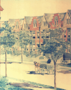 I have been doing some posts on different architectural gems in Brooklyn, also known as the borough of Homes and Churches.  Though I have profiled a magnificent church, I have not done any homes yet. Although Brooklyn has some magnificent free-standing homes, when I think of Brooklyn, I think of row houses. I live in a stunning landmarked row house in Greenpoint and when I went to school I lived in a stately brownstone row house in Crown Heights. When most people think of Brooklyn, they envision elegant brownstone row houses uniformly creating a gorgeous symmetry. Since I have been profiling architecture in Clinton Hill, I decided to stay in the area and profile the cute and cozy townhouses that surround Pratt institute.  There are other row houses that are far more elegant and far larger, but these small gems are  special. About twenty years ago, I became alarmed because these stately homes built for Pratt faculty about 1907 by Hobart  A. WIlliams had fallen into disrepair, but today they have been restored to their former elegance. Designed in the colonial revival style, they differ from other brick rowhouses because they are not uniform. One has  a peaked stuccoed gable, the other had a Dutch style stepped gable. Paired stoops lined by railings lead to entrances with paneled double doors.  Students and faculty live in them. Supposedly thirty-two of these landmarks suvive, but there used to be more. Pratt evidently committed the architectural sin of tearing down some of these gems to expand the campus. What a shame! How many other beautiful buildings in Brooklyn have not survived the wrecking ball.