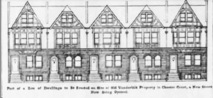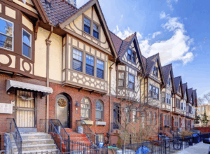 Chester Court is a gorgeous little cul-de-sac just off Flatbush Avenue in Lefferts Garden. It has been landmarked. Chester Court includes 18 Tudor Revival style houses set in two opposing rows. It was designed and built in 1911-12 by Peter J. Collins (1866- 1934), a prominent Brooklyn architect and developer who was born and raised in Brooklyn and served as the borough’s Superintendent of Buildings. Collins was one of Pratt Institute’s first grads. Collins was inspired by Chester in England. In the summer of 1910, Collins took a trip to England and was smitten by its Tudor architecture, especially prominent in Chester. The city’s famed Tudor style half-timbered houses inspired him to recreate the same here in Brooklyn. Although the Tudor Revival was well established in Brooklyn by this time as a style for freestanding houses, it had not been widely used for row houses. The Chester Court houses are perhaps the first Tudor Revival style row houses in the borough, if not the entire city. Their design was inspired by the renowned timber-framed “black-and-white” or “magpie” buildings of Chester, England, which primarily date from the 16th and 17th centuries, and from the “Black-and-White Revival” of the late 19th and early 20th centuries. Jason Nixon, a former resident of Chester Court told us that he loved “turning the corner from Flatbush Avenue and stepping into the Cotswolds,” which is exactly what Collins intended.